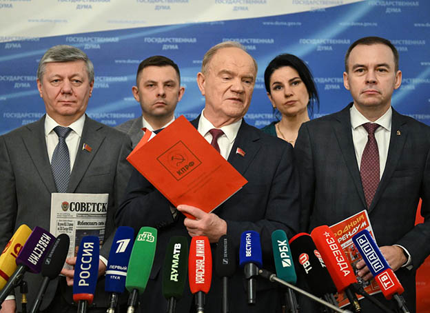 24 марта, предваряя пленарное заседание Государственной Думы, перед журналистами выступил Председатель ЦК КПРФ, Руководитель фракции КПРФ в Госдуме Г.А. Зюганов.