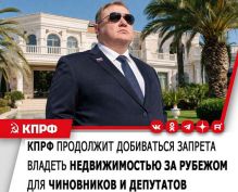 Сейчас вы здесь: Главная » Новости и события » Комментарии » Газета «Правда»: Правительство РФ дало отрицательный отзыв на внесённый фракцией КПРФ в Госдуму законопроект, который предусматривает запрет для чиновников на владение зарубежной недвижимостью