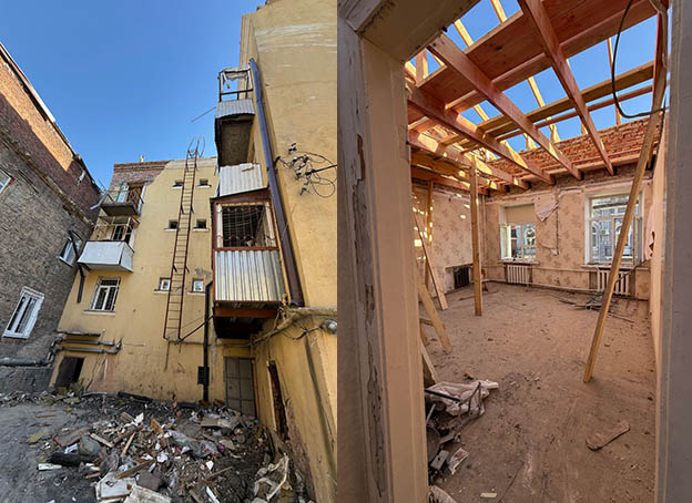 — Во время прилета в квартире находились четверо детей. Они успели выбежать. Все сгорело. Семья так сильно испугалась, что вообще не хочет здесь появляться. Я им предлагаю прийти посмотреть, что мы уже сделали со строителями, а они отказываются, — поделился он.