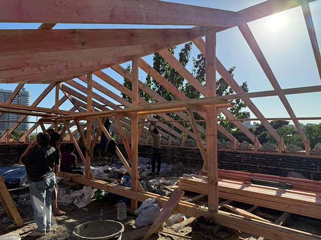 Один из собственников квартиры под открытым небом рассказал, что вынужден снимать жилье поблизости, чтобы его дети продолжали ходить в школу. Он активно принимает участие в ремонте и помогает строителям. Все работы мужчина оплачивает самостоятельно.