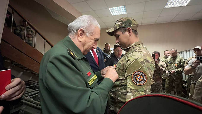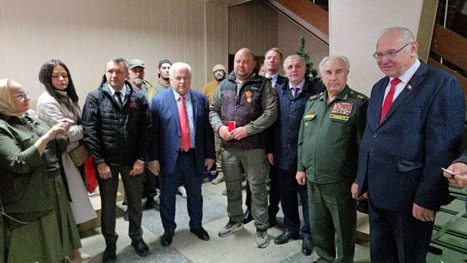В знак признания заслуг и мужества, проявленного в боях, генерал-лейтенант Г. П. Фоменко вручил отличившимся военнослужащим памятные медали ЦК КПРФ «80 лет Донбасской наступательной операции».
