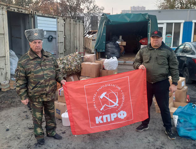 Коммунисты передали 1 мотобайк для штурмового подразделенеия, военное имущество, продукты питания и фрукты, консервы домашнего приготовления 100 банок по 3 литра, охлаждающие жидкости для техники, бачки для хранения питьевой воды 15 штук ёмкостью 50 литров каждая, медицинские украдки и пр.