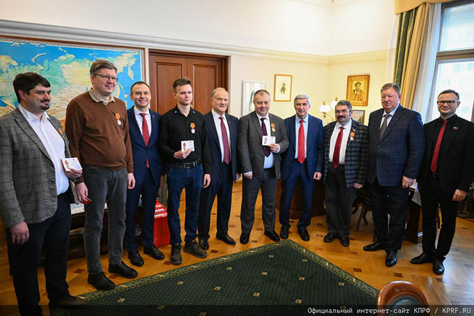 В церемонии награждения, состоявшейся в Москве в стенах Государственной Думы, приняли участие первый заместитель Председателя ЦК КПРФ И.И. Мельников, первый заместитель Председателя ЦК КПРФ Ю.В. Афонин, заместитель Председателя ЦК КПРФ В.И. Кашин и первый секретарь ЦК ЛКСМ РФ В.П. Исаков.