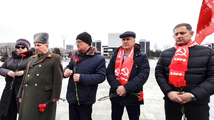 В торжественной церемонии возложения цветов приняли участие член Президиума ЦКРК КПРФ, первый секретарь Ростовского обкома КПРФ, депутат Государственной Думы ФС РФ Е.И. Бессонов; член ЦК КПРФ, секретарь Ростовского ОК КПРФ, депутат Законодательного Собрания Ростовской области, генерал-лейтенант в отставке Фоменко Г. П.; секретари Ростовского обкома КПРФ Животов Д.В., Криворотов А.С., Нестеренко И. Н.; Председатель ОКРК КПРФ, первый секретарь Ростовского-на-Дону горкома КПРФ Нерсесян Ю.С.; кандидат в члены ЦК КПРФ, секретарь Ростовского-на-Дону горкома КПРФ, первый секретарь Ростовского обкома ЛКСМ РФ Кислицына И.И.; секретарь Ростовского-на-Дону горкома КПРФ, член ЦКРК ЛКСМ РФ Тарасенко М.В.; депутаты Ростовской-на-Дону городской Думы: секретарь Ростовского-на-Дону горкома КПРФ, руководитель фракции КПРФ в Ростовской-на-Дону городской Думе Оськина Н.В. и Мамаев М.Э., первые секретари районных комитетов донской столицы, коммунисты, комсомольцы и сторонники партии.