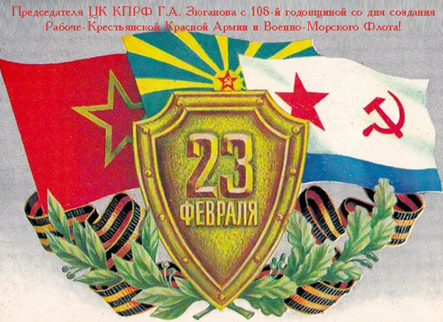 Поздравление Председателя ЦК КПРФ Г.А. Зюганова с 108-й годовщиной со дня создания Рабоче-Крестьянской Красной Армии и Военно-Морского Флота!