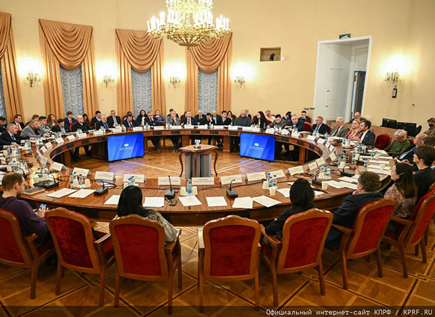 Ведущим круглого стола был первый заместитель Руководителя фракции КПРФ в Госдуме Н.В. Коломейцев. Основными докладчиками были председатель комитета Госдумы по делам СНГ, евразийской интеграции и связям с соотечественниками Л.И. Калашников и заместитель председателя комитета Госдумы по региональной политике и местному самоуправлению, доктор исторических наук М.Н. Матвеев.