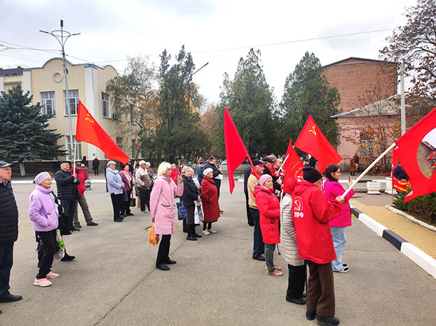 В Сальске состоялся митинг, организованный местным отделением КПРФ, в честь 108-й годовщины Великой Октябрьской социалистической революции.