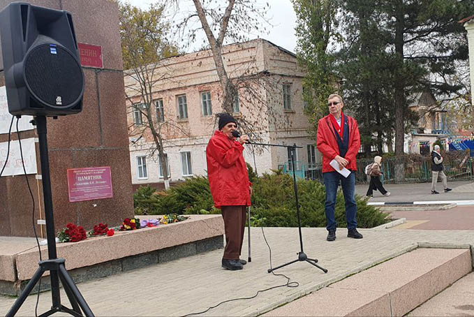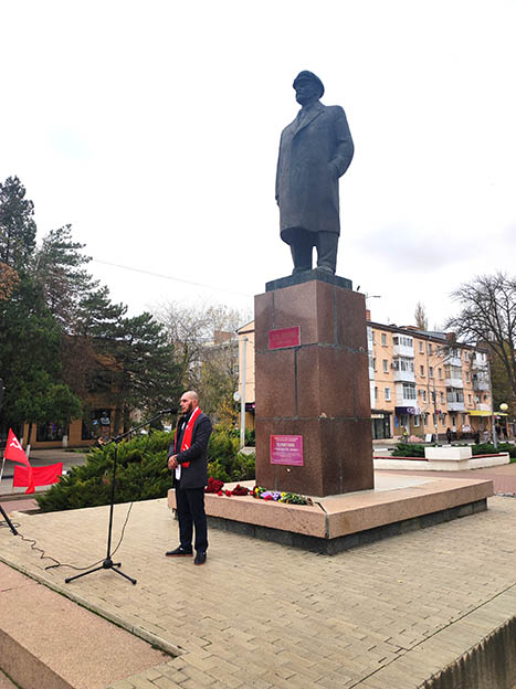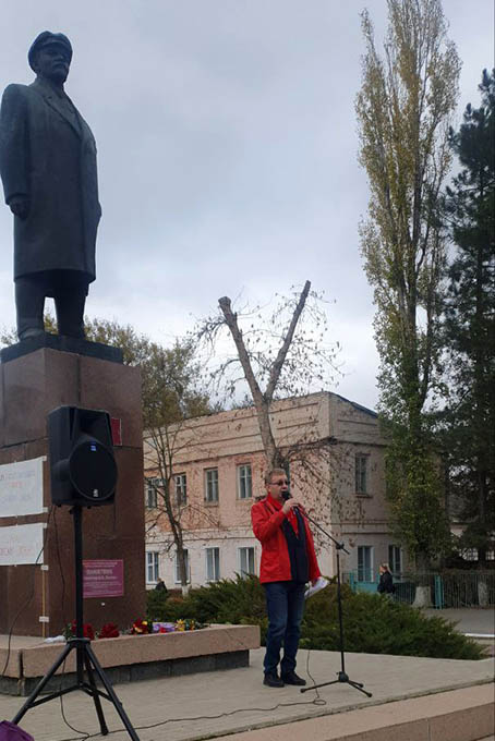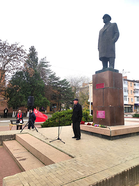 В посёлке Зимовники 7 ноября состоялся митинг, открыл и вёл который кандидат в члены ЦК, секретарь Ростовского обкома КПРФ по идеологии Александр Дедович.