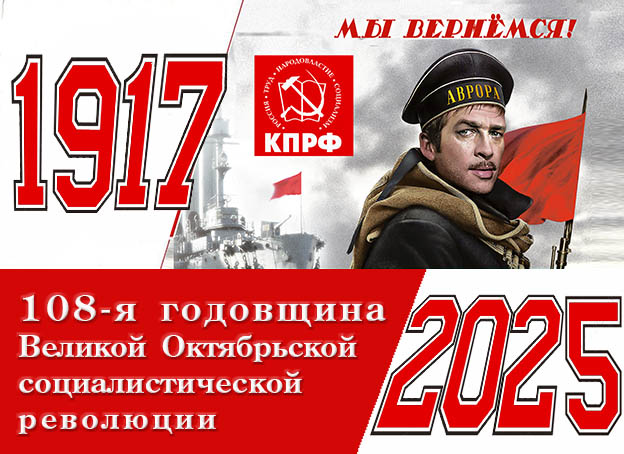 108 лет минуло с момента, когда выстрел с крейсера "Аврора", своими раскатами обозначивший начало новой эпохи в истории не только нашей Отчизны, но и всего человечества - социализма. Великая Октябрьская социалистическая революция была абсолютно закономерным ответом на многовековой запрос на справедливость. Советская страна убедительно продемонстрировала: когда ценности народовластия и социализма, дружбы народов и гуманизма лежат в основе развития, его результаты способны восхитить всю планету. Не удивительно, что социалистические принципы, провозглашенные в Октябре 1917-го, не устраивают капитализм как в мире, так и в современной России, но трудовой народ продолжает тяготеть к красному цвету созидания, справедливости и победы. Борьба трудящихся за торжество идеалов социализма продолжается.
