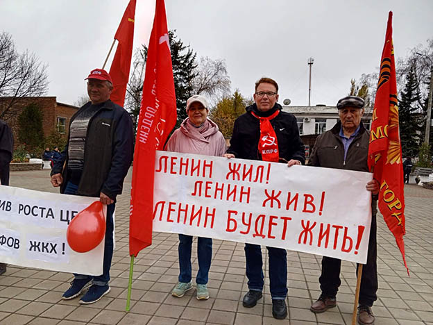 В посёлке Зимовники 7 ноября состоялся митинг, открыл и вёл который кандидат в члены ЦК, секретарь Ростовского обкома КПРФ по идеологии Александр Дедович.