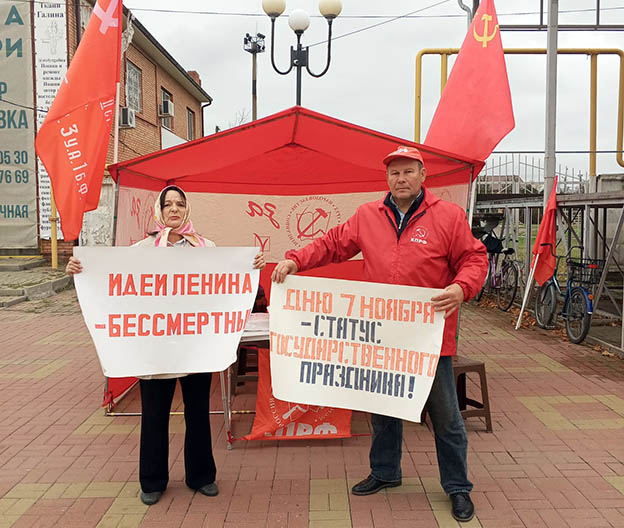 В Сальске состоялся митинг, организованный местным отделением КПРФ, в честь 108-й годовщины Великой Октябрьской социалистической революции.