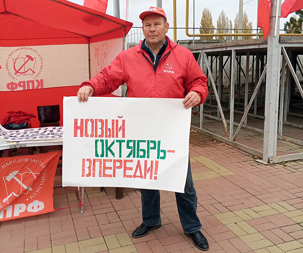 В посёлке Зимовники 7 ноября состоялся митинг, открыл и вёл который кандидат в члены ЦК, секретарь Ростовского обкома КПРФ по идеологии Александр Дедович.