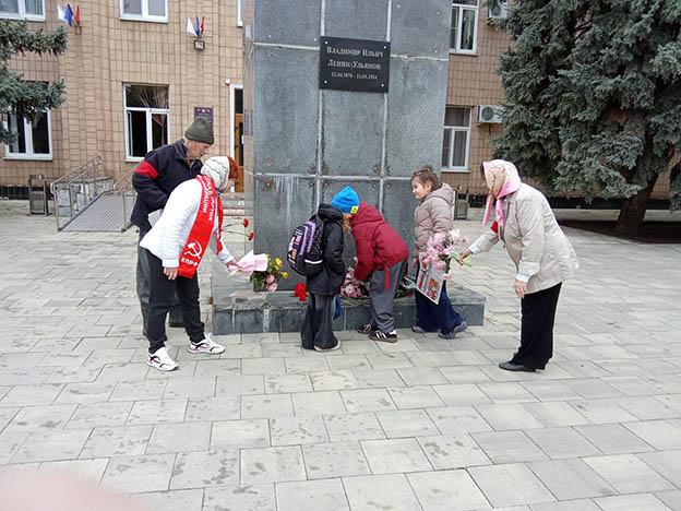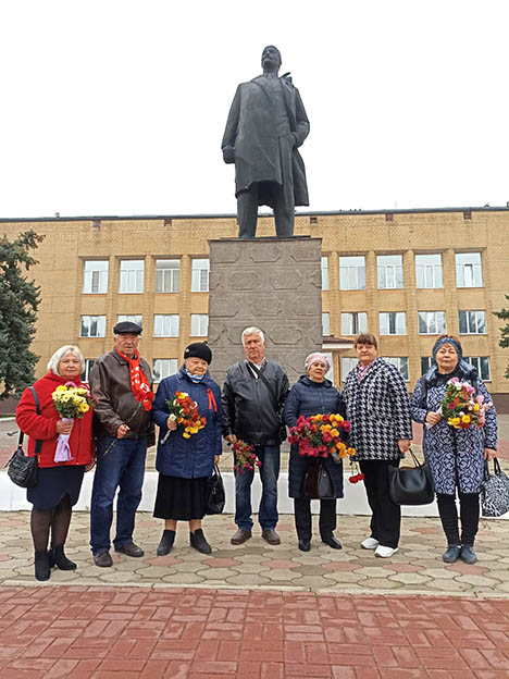 Затем колонна проследовала в мкр. Октябрьский, ко второму памятнику В.И. Ленину, где состоялось возложение цветов и было записано видеообращение уже от жителей мкр. Октябрьский.