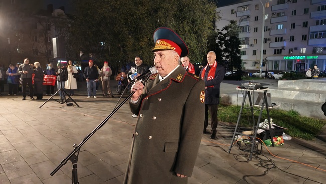 Выступивший на митинге член ЦК КПРФ, депутат Законодательного Собрания Ростовской области, генерал-лейтенант Г.П. Фоменко рассказал собравшимся о славном пути строительства мощной социалистической державы – СССР – через индустриализацию, коллективизацию и культурную революцию. «СССР являлся оплотом мира и гарантией стабильности во всем мире. Сейчас, не справляясь с нарастающими противоречиями, лидеры капиталистических стран ищут выход на путях разжигания войн и возрождения фашизма», - подчеркнул Григорий Петрович.