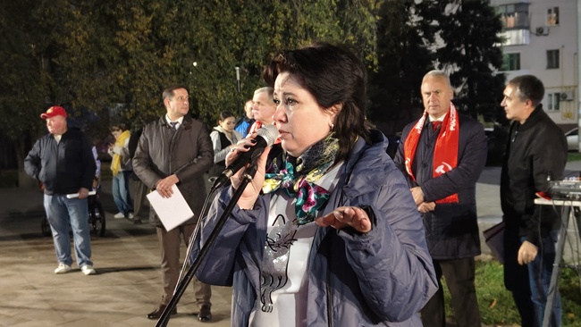 Митинг открыли и вели секретари Ростовского-на-Дону городского комитета КПРФ Дмитрий Животов и Ирина Кислицына: